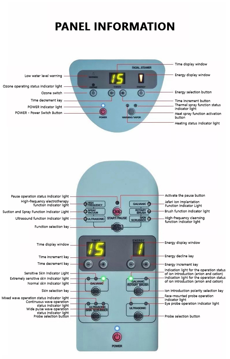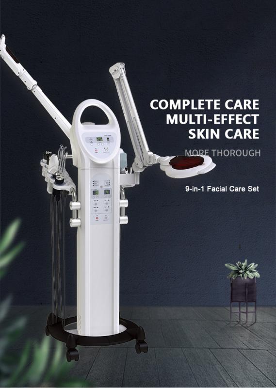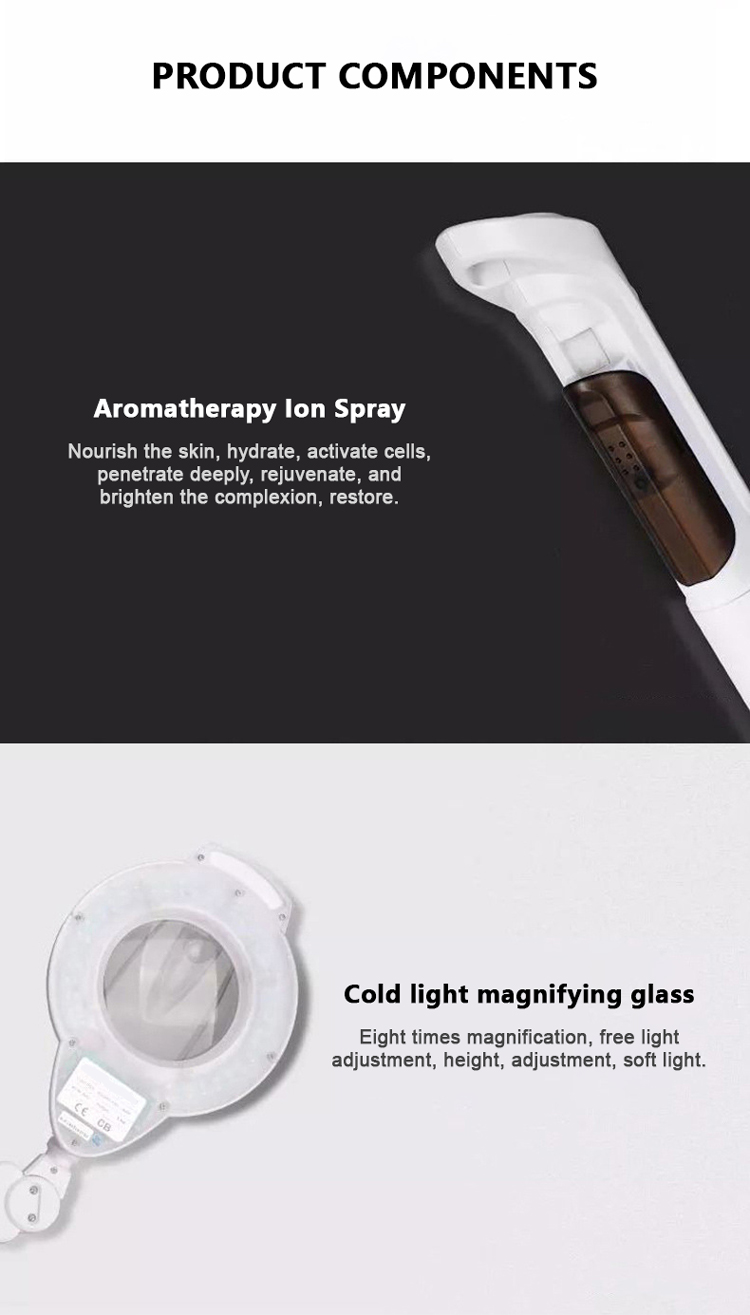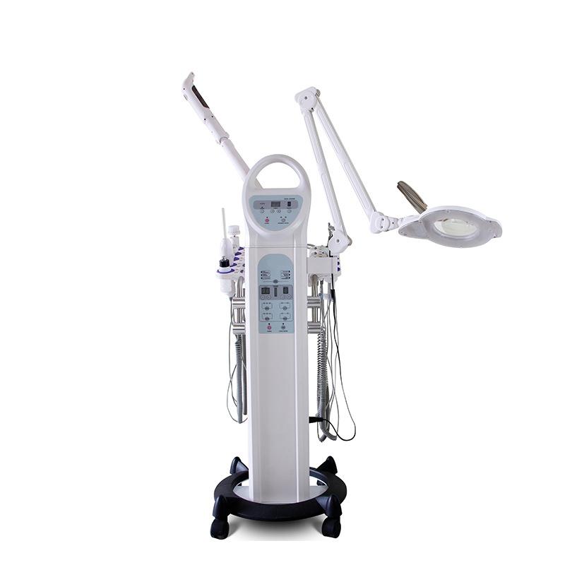 Instrumen kecantikan pelbagai fungsi / ultrasonik/penggosok kulit/frekuensi tinggi/berus berputar/galvanik/vakum semburan/pengukus muka/lampu pembesar